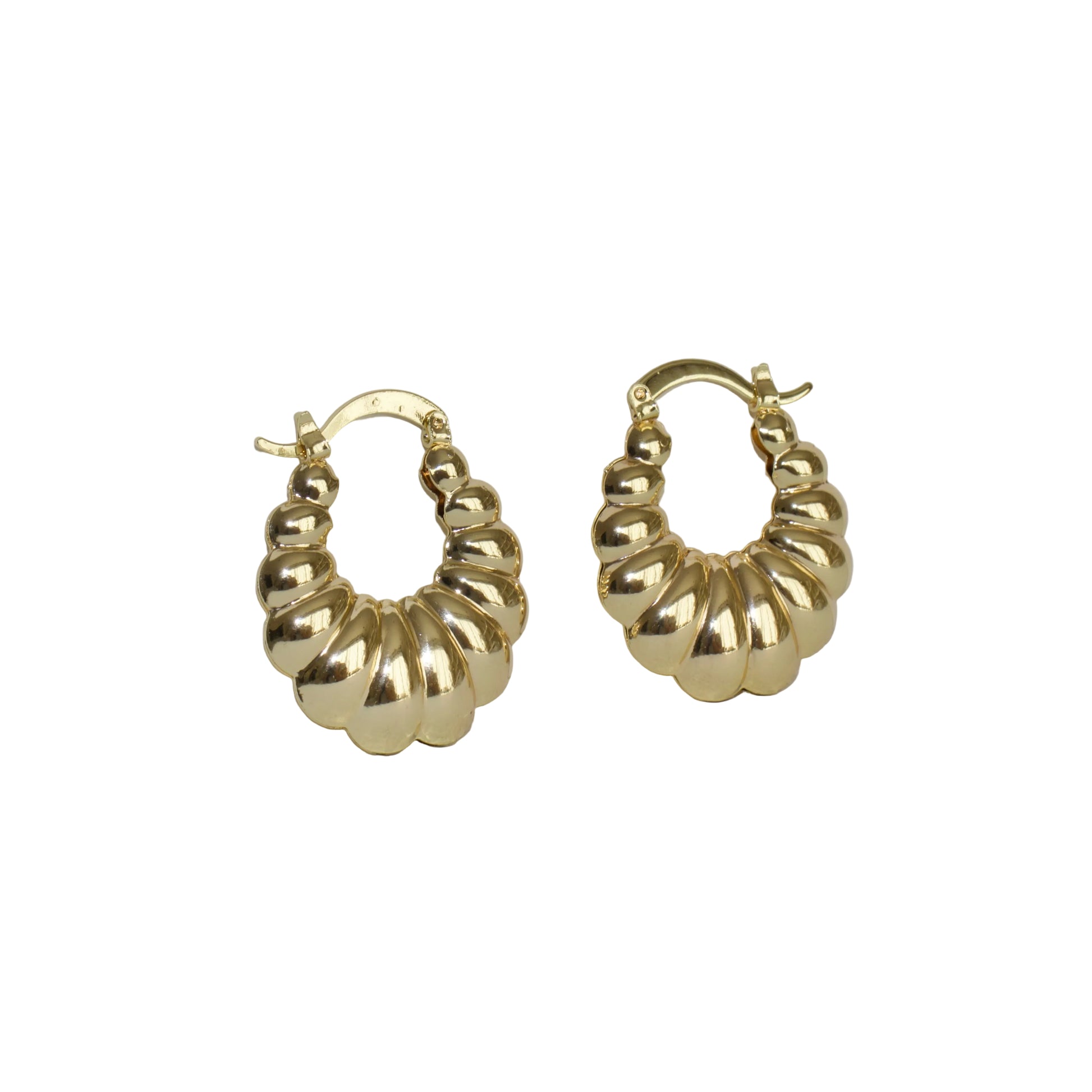 14K GOLD FILLED CHUNKY RIBBED TEXTURED LIGHTWEIGHT MEDIUM HOOP.