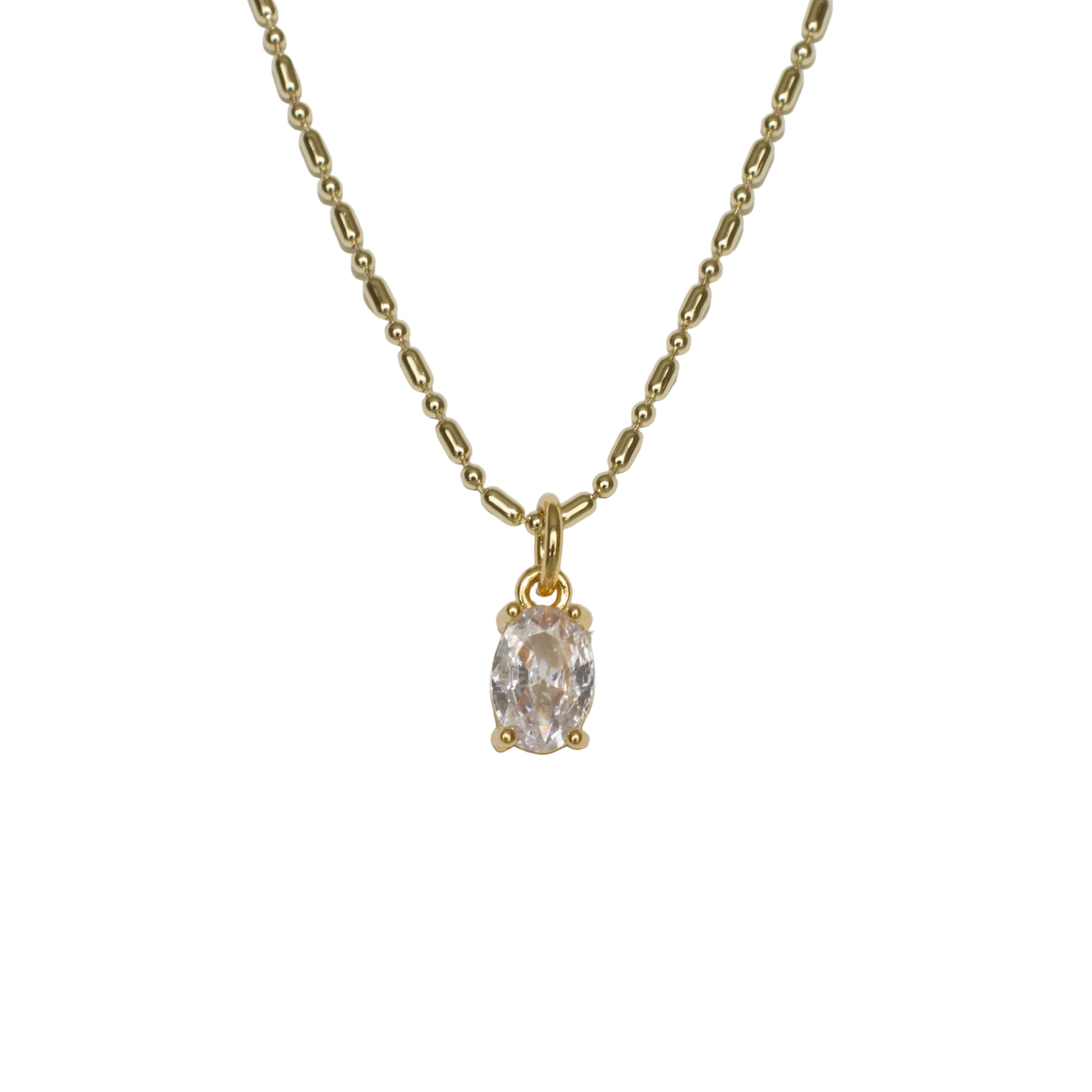 14K GOLD FILLED DAINTY BEADED CHAIN WITH OVAL CZ CHARM